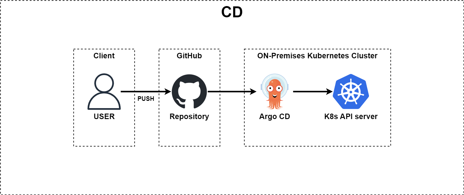 インフラを管理している repository への push トリガーで、アプリケーションリソースを管理している Argo CD が自動でデプロイを実行しています。